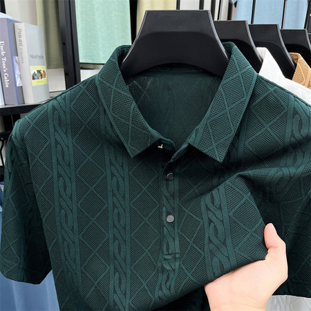 爆款麻花高克重提花面料polo衫短袖