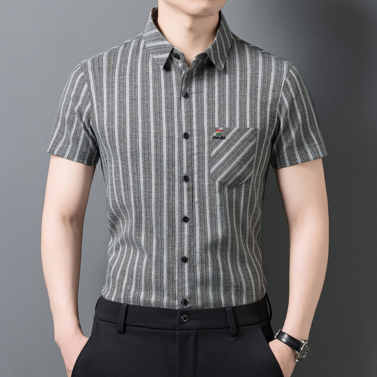 罗蒙衬衫&51537夏季新款莫代尔亚麻短袖衬衫